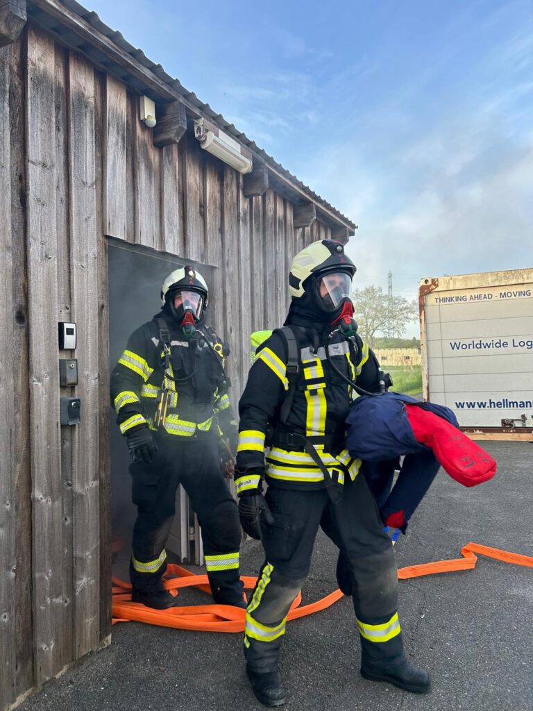 Bereits auf der Anfahrt erhöhte sich die Herausforderung, als das Einsatzstichwort von Technischer Hilfeleistung (TH) auf Feuer (FEU) geändert wurde. Unsere Atemschutzgeräteträger reagierten prompt und rüsteten sich bereits während der Fahrt aus, um am „Einsatzort“ keine wertvolle Zeit zu verlieren.